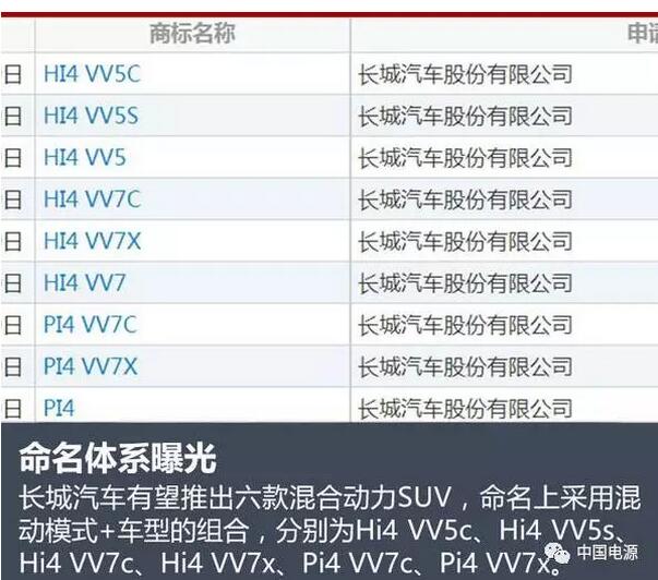 根据此次曝光的信息得知,长城汽车有望推出六款混合动力SUV,命名上采用混动模式+车型的组合。六款车型分别为Hi4 VV5c、Hi4 VV5s、Hi4 VV7c、Hi4 VV7x、Pi4 VV7c、Pi4 VV7x。其中Pi4 VV7x和Pi4 VV7c此前已正式亮相,采用长城Pi4电动四驱插电式混合动力系统,而Hi4车型有望搭载长城Hi4电动四驱强混系统。