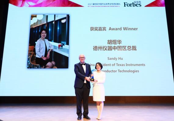 德州仪器中国区总裁胡煜华女士荣获福布斯“2017中国杰出商界女性”称号