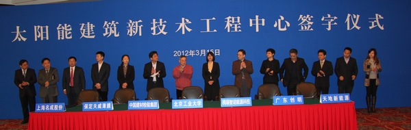 当日,北京工业大学、中国建材检验认证集团股份有限公司等七家单位共同签约,组建天津市太阳能建筑新技术工程中心。该工程中心成立后将紧密跟踪我国太阳能产业发展趋势,整合、优化、集成太阳能产业在建筑中的工程应用技术。