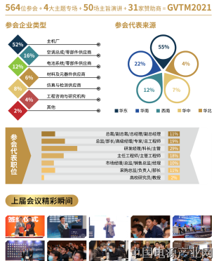 GVTM作为国内汽车热管理行业举办历史悠久的行业盛会,至2021年,已经成功举办8届,累计有超过5000位业界同仁出席。第八届国际节能与新能源汽车热管理产业大会暨展览会GVTM,将以“新能源、新科技、新势力 ”为主题,聚焦“动力电池热管理与热安全、座舱气候与乘员舒适性、科技赋能整车热管理前瞻 、热仿真与测试方案、电驱动系统热管理、智能电动汽车热管理”等行业关注,统筹前端研发与终端市场对于高效、可靠、智能化热管理系统的需求,邀请国内外热管理全产业精英,2022年4月14-15日,齐聚上海,与超过1000位行业同仁、60+中外技术大咖、深度互动共襄盛会!
