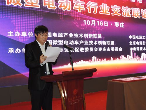 另外,中国微型电动车产业技术创新联盟成立大会暨第一届理事会在山东枣庄召开。中国科学院院士、中国化学会顾问、钱逸泰教授出席,枣庄市副市长王新宁致辞,北京大学其鲁教授、北京汽车行业协会副秘书长徐华、中国科学院电工技术研究所陈永翀教授在主席台就座。在会议上,中国电源工业协会理事长、工信部电子信息产品司助理巡视员季国平当选为联盟理事长,有关领导在会议上向到会的副理事长及秘书长、副秘书长颁发了证书。