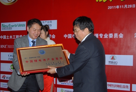国务院参事徐锭明到会祝贺发表讲话,徐参事以乔布斯为例,鼓励电源行业开拓思路、创新发展,在新能源等方面取得新的成绩。并与中国电源工业协会理事长季国平向成都双流西航港经济开发区和成都银鑫新能源有限公司授予中国锂离子蓄电池电源系统产业技术创新联盟产业化示范基地称号。