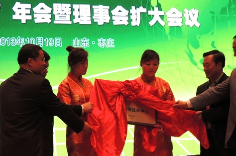 工信部黄建忠处长、国务院发展研究中心研究员王国华博士、电源协会季国平理事长,与重庆车辆检测研究院有限公司刘昌仁总经理为质量监督检测技术中心揭牌