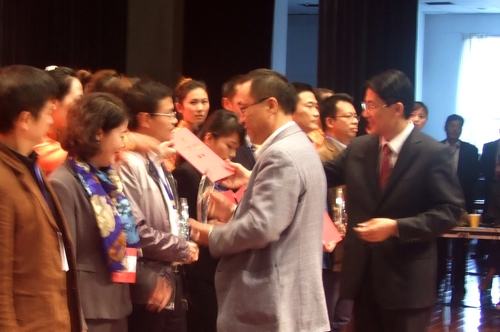 2013中国新能源产业十大科技创新奖颁奖典礼于10月19日在山东枣庄会展中心隆重举行,工信部节能与综合利用司资源综合利用处处长黄健忠、枣庄市政府副市长张兵与中国电源工业协会理事长季国平、北京大学教授其鲁分别向获得十大科技创新奖及十大管理创新奖的企业或企业家颁奖。