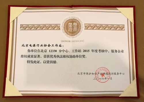 北京电源行业协会12330工作站荣获“执法维权协助优秀单位”