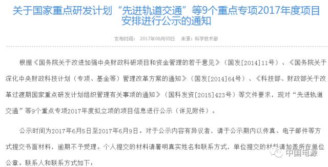 近日,从科技部官网获悉,根据《国务院关于改进加强中央财政科研项目和资金管理的若干意见》(国发[2014]11号)、《国务院关于深化中央财政科技计划(专项、基金等)管理改革方案的通知》(国发[2014]64号)、《科技部、财政部关于改革过渡期国家重点研发计划组织管理有关事项的通知》(国科发资[2015]423号)等文件要求,现对“新能源汽车”等9个重点专项2017年度拟立项的项目信息进行公示。公示时间为2017年6月5日至2017年6月9日。