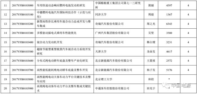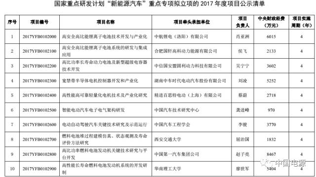 2017年度“新能源汽车”国家重点专项项目公示