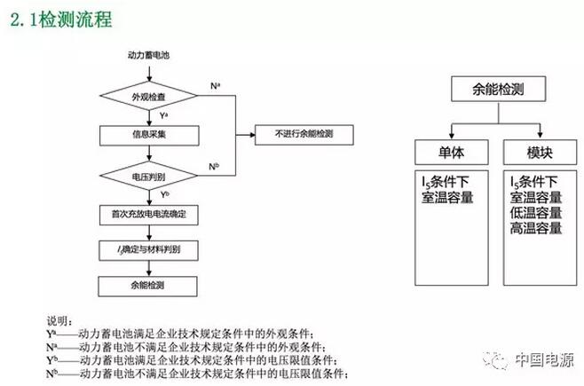 废旧动力电池经过长时间的使用,也可能出现物理结构的松动和电解液漏液等情况,给废旧动力电池二次利用带来安全隐患。因此,废旧动力电池的剩余容量的检测方法无疑是其二次使用安全的重要保障。《余能检测》规范了动力电池外观检查、极性检测、电压判别、充放电电流判别、余能测试等检测流程,为车用动力电池的余能检测提供评价依据。标准的实施,将有助于提高废旧动力蓄电池余能检测的安全性和科学性。