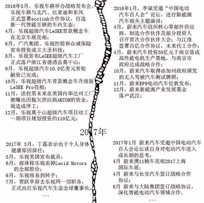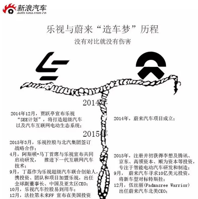 一起来看乐视汽车和蔚来汽车两家企业从成立以来,陆续发展的纪事简图: